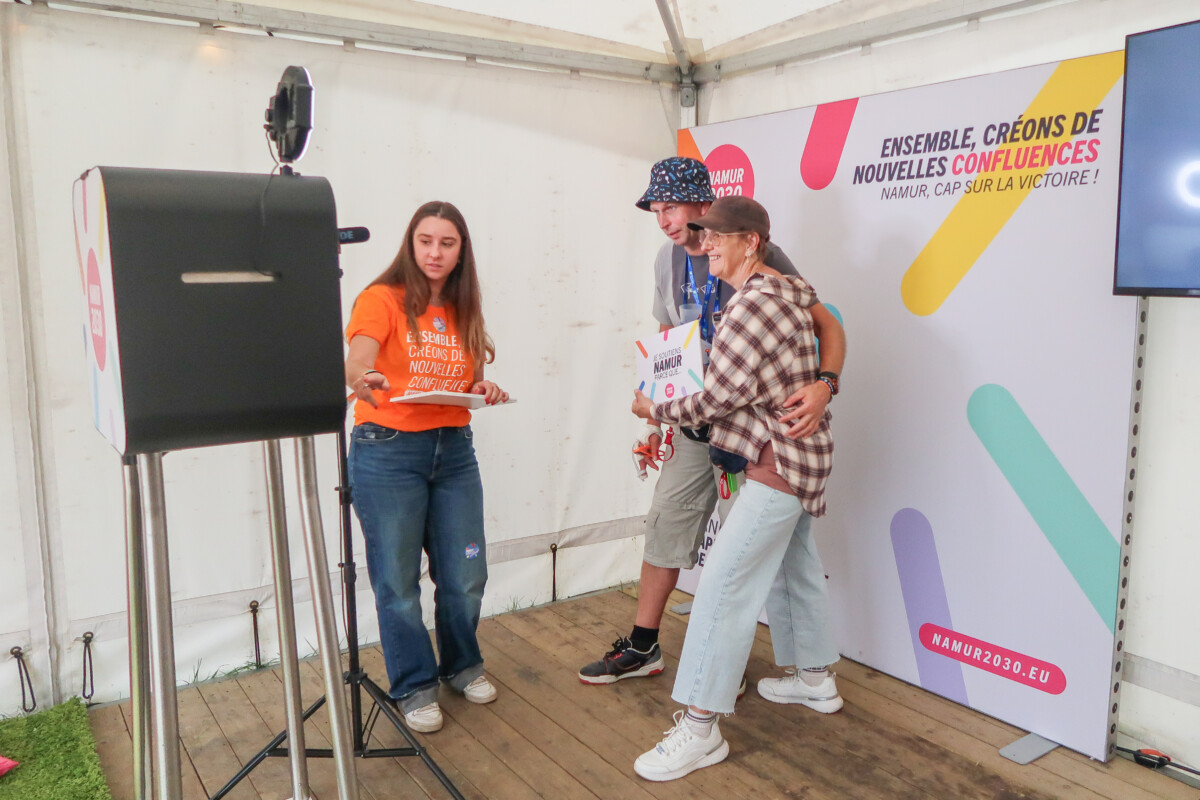 Les 16 et 17 août 2025, l’équipe de Namur 2030 était présente à la brocante de Temploux, l’un des rendez-vous incontournables de l’été en Wallonie qui, cette année, a attiré plus de 200 000 visiteur·euse·s. Sous un ciel ensoleillé et au cœur de l’ambiance festive de l’événement, le stand a accueilli de nombreux curieux·euse·s et leurs témoignages de soutien via un videobooth.