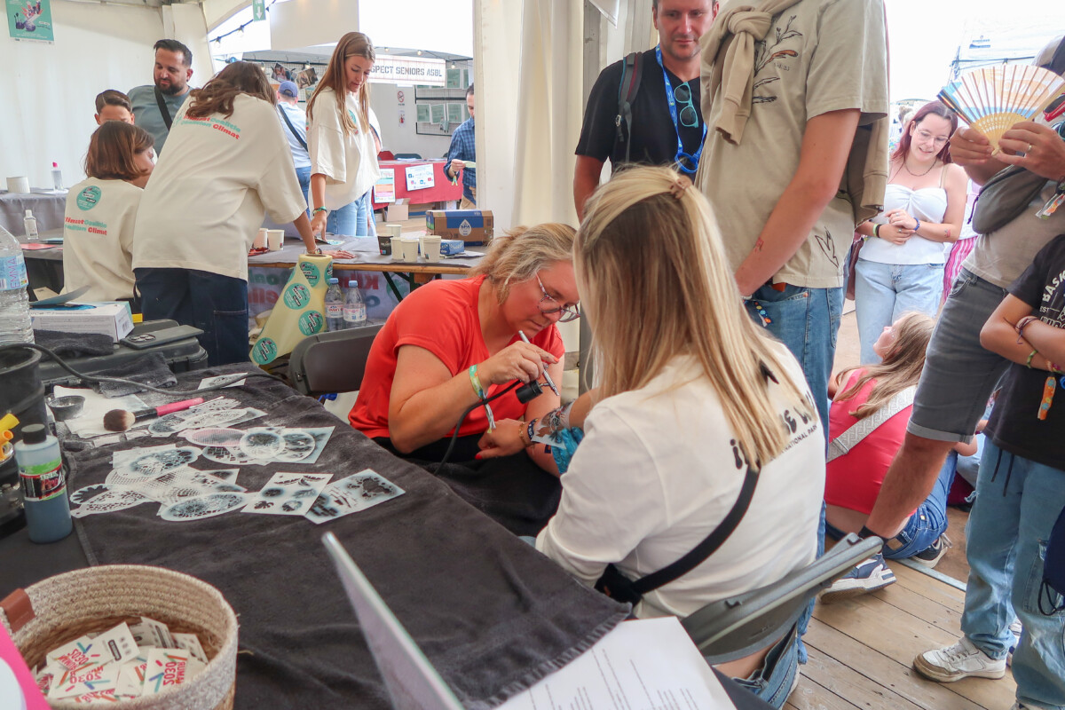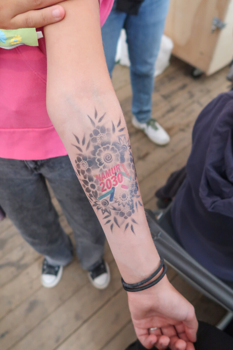 Depuis le cœur du site du festival, notre stand a permis de nombreux échanges riches avec les visiteur·euse·s autour des projets en cours pour une Namur plus solidaire et durable. Grâce à des animations interactives et des moments de dialogue ouverts, les citoyen·nes ont pu partager leurs idées, poser leurs questions et contribuer activement à la construction de notre avenir commun. Cerise sur le gâteau : notre tatouage éphémère aux couleurs de Namur 2030 a remporté un franc succès 😎