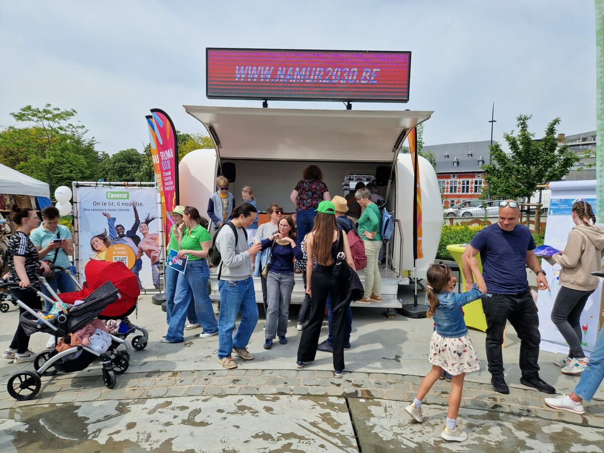 Cet été, dans le cadre d’une grande campagne de notoriété, l’équipe de Namur 2030 s’est mobilisée à l’occasion de plusieurs événements majeurs du territoire : la brocante de Temploux, le festival des Solidarités ou encore les Apéros Namurois.
